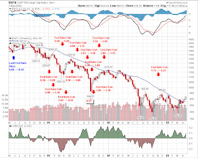2 chart of S&P during 2000-2001 and 2007-2008. Each one has the fed rate cut.9:00 AM
